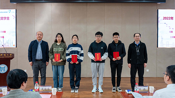 颁奖仪式上,主持人介绍了“新研氢能英才”学业奖学金设立和评选的情况。随后,齐志刚校友宣读了2022年“新研氢能英才”学业奖学金获奖学生名单,齐志刚、王丽红、闫永臣、王海波分别为获奖学生颁发荣誉证书。